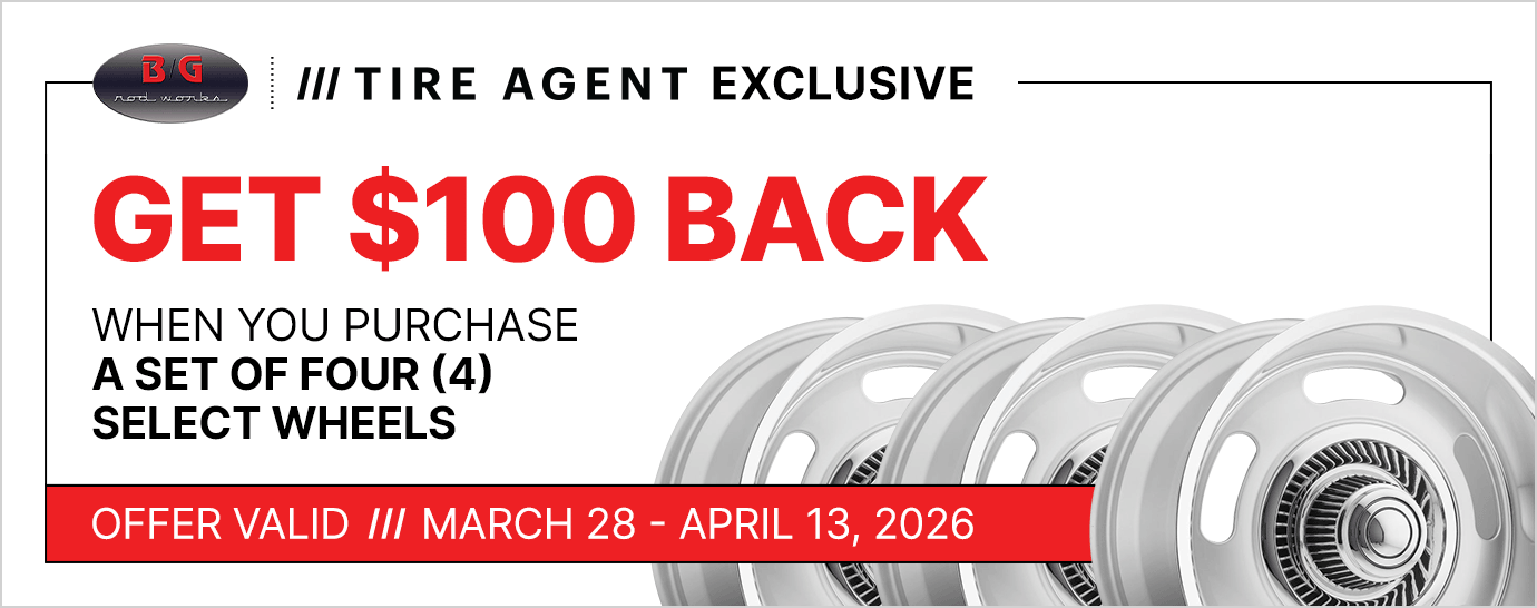 Offer valid for residents of the United States (excluding Hawaii and Alaska) only. Purchase must be completed between 03/28/2026 and 04/13/2026. Limit of one (1) redemption request $100 Reward per purchase of four (4) select B/G Rod Works wheels.